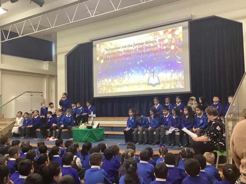 On Thursday we did our Year Two Class assembly all about New Beginnings. We focused on the celebrations of New Year and talked about the traditions that many of us have around this time such as making New Years resolutions, singing Auld Lang Syne and counting down at midnight. We also looked at all of the exciting things that we have to look forward to in the year of 2026 such as the Mens Football World Cup, a full solar eclipse and lots of exciting new movies! We described Bible stories that relate to new beginnings and how they can symbolise a fresh start. We looked at examples of this such as Noah and the Ark and Moses leaving the Egyptian Palace. The children were incredible in their class assembly and did themseleves proud!