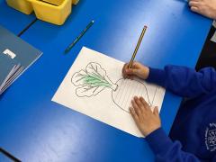 As part of our RE learning, the children have been exploring the question, "Who do Christians say made the world?" Together, we learnt about the Christian creation story and the celebration of Harvest. The children showed great curiosity as they explored the school's fruit and vegetable garden, one of God's creations, making links between nature and thankfulness. They also discussed the different foods we might share at Harvest time and reflected on the importance of gratitude. As part of this topic, the children wrote thoughtful prayers, expressing appreciation for the world around them and the gifts it provides.