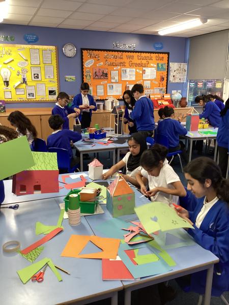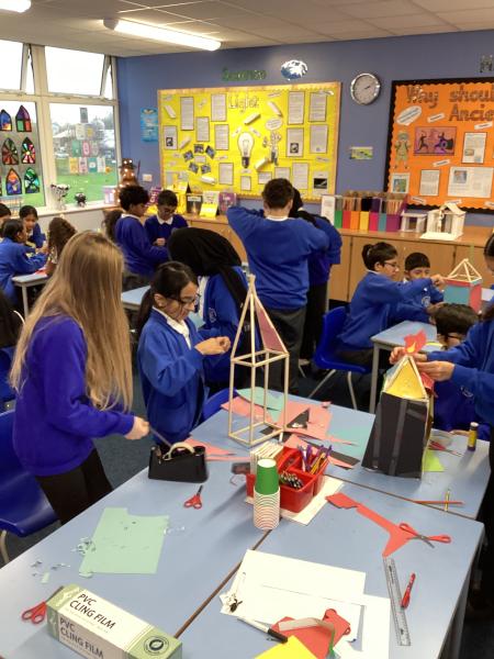 Year 6 have used their designs to create some wonderful shelters. The children built them using the saws and glue guns and have made sure they are durable, windproof and waterproof. A great job!