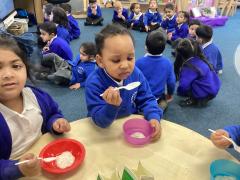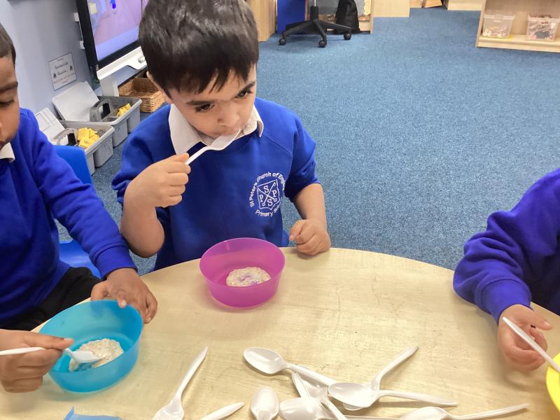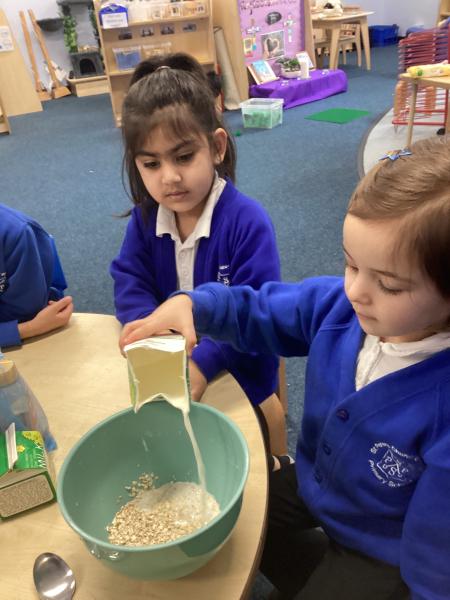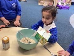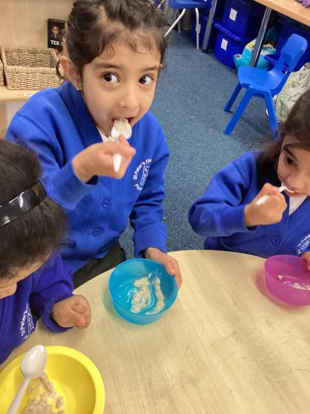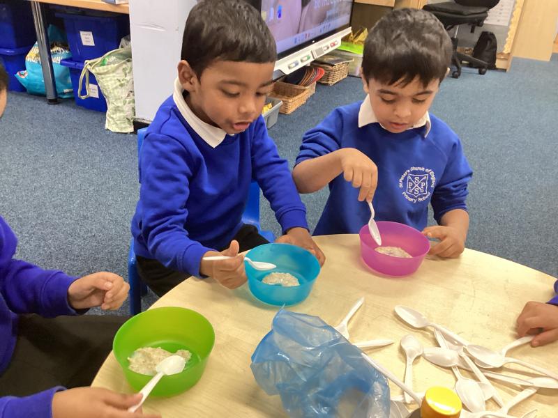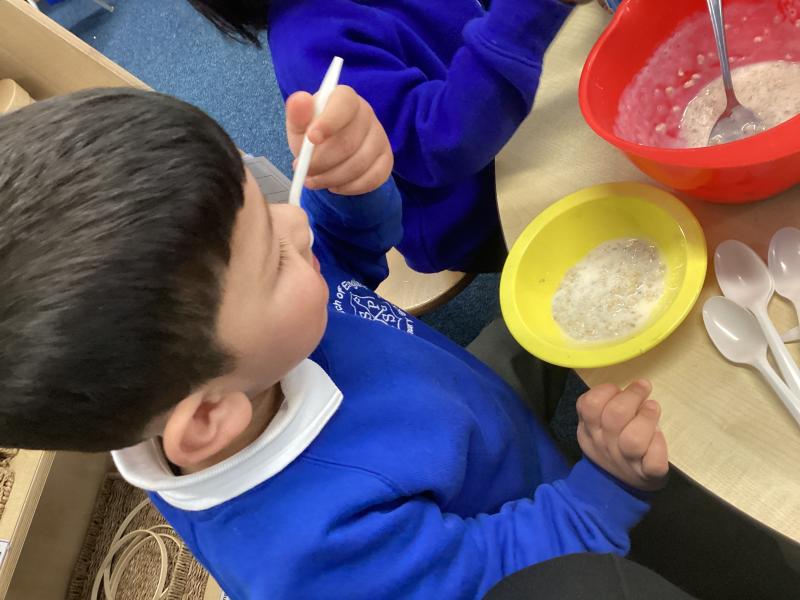We had great fun cooking and tasting porridge together. The children helped to prepare it and then chose from two toppings: honey or cinnamon. It was wonderful to see everyone trying something new. Some children really enjoyed the flavours, while others decided it wasn’t their favourite—but everyone had a go!