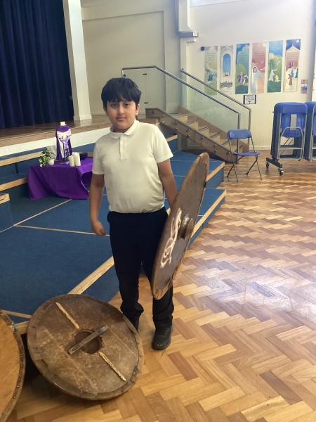 In the afternoon, we marched around the town as Roman soldiers with shields and swords, we even created the turtle formation with our shields.