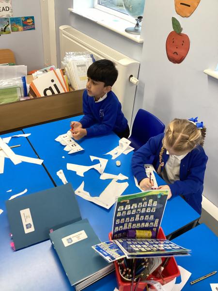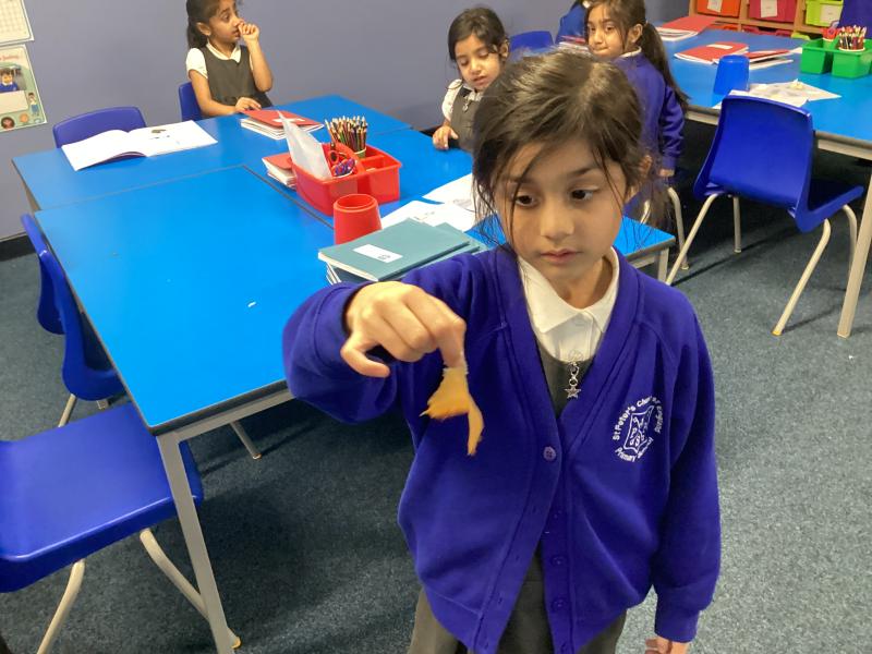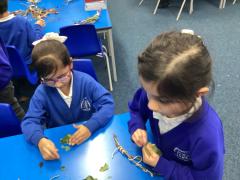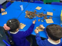 In Science, the children have been learning about Animals, including Humans. They identified and explored the five senses and learned about the main parts of the human body and their functions. The children also investigated different categories of animals, including fish, birds, reptiles, mammals and amphibians, learning how they can be grouped based on their features. In addition, they explored the different types of animal diets, identifying herbivores, omnivores and carnivores, and discussing what these animals eat and why.