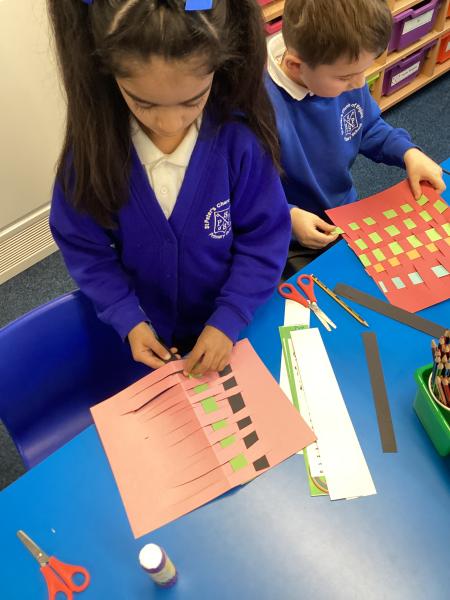 This term in art we have been we have been learning all about tackling textiles! It has been a super fun topic, and we have learnt lots of new things all about fabrics, weaving, natural dyes and man-made dyes. Throughout our lessons we have dyed fabric, explored fabrics and even began to weave. Towards the end of the topic, we began to practice paper weaving and then moved onto natural weaving.