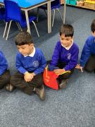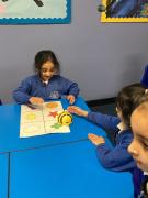 In Nursery, we are always developing our communication, language, and literacy skills. We talk with our friends as we independently choose our learning, and every three weeks we explore a new topic book. We take part in activities such as retelling the story, creating story maps, and labelling pictures with our names.