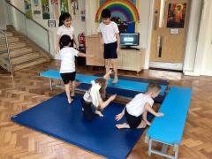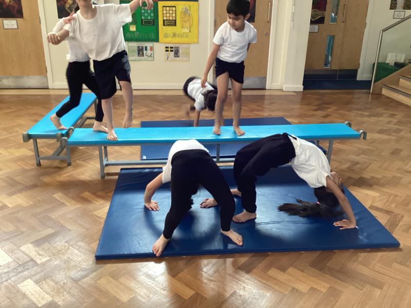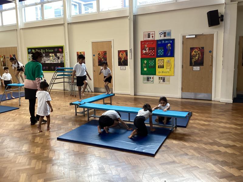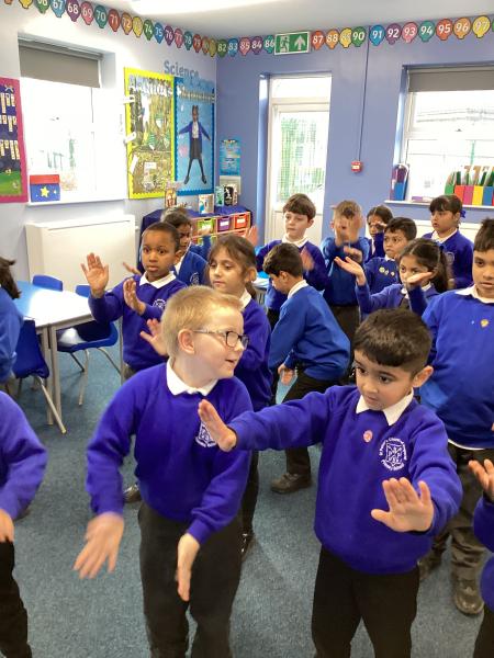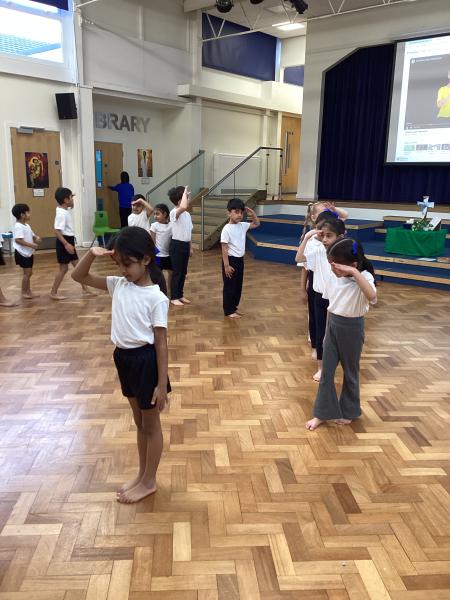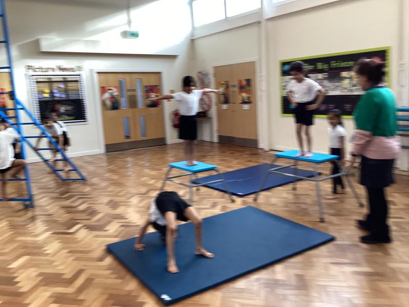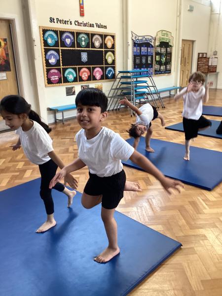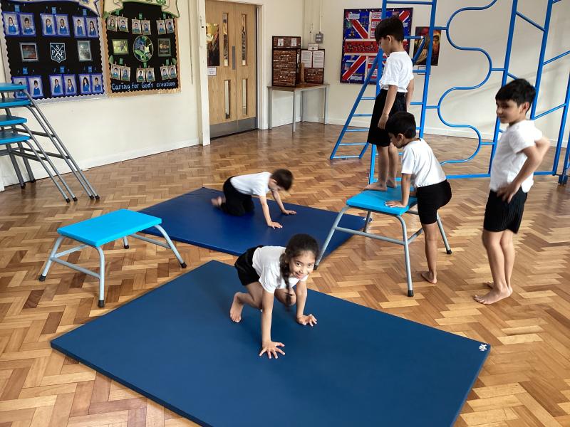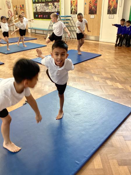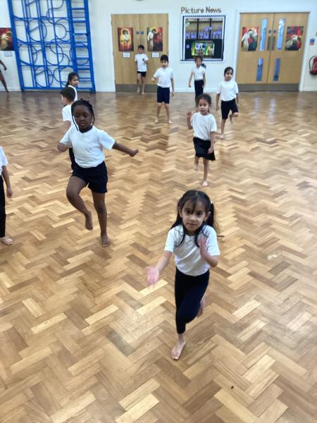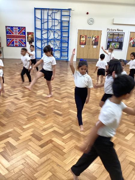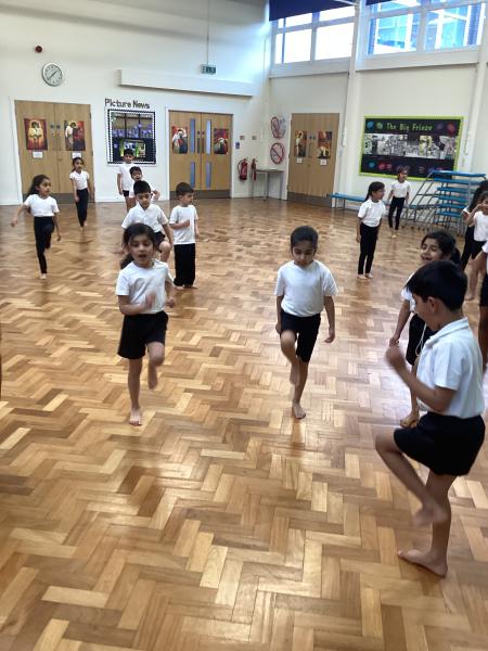 In Physical Education, the children have been developing a range of skills across dance, gymnastics and games. In dance, the focus has been “March, March, March,” where the children learned to march on the spot, forwards and backwards, working both independently and with a partner to keep in time with the music. They also explored movement through the theme of Jack and the Beanstalk, developing their ability to turn, jump and travel in a variety of ways. In gymnastics, the focus was on points and patches, with children learning to travel confidently and competently using different parts of the body, including their hands. They practised holding still balances and progressed from floor work to using apparatus. In outdoor PE games, the focus was on throwing and catching, with children using a range of equipment to develop accuracy and control, while also learning about aiming games and how to move safely and sensibly within a shared space.